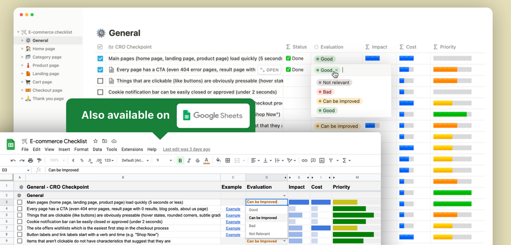 Select if you would like to get the E-commerce Checklist in Notion format only OR in Notion format + Google Sheets AND click "Buy this"